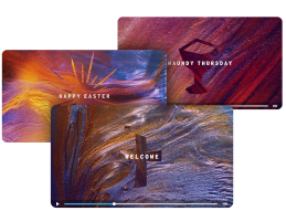 A variety of still & motion graphics designed for use during your Easter services with text like "Happy Easter" and "Welcome"